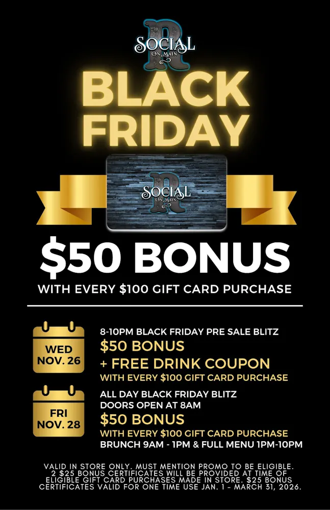 Receive a $50 Bonus Gift Certificate & free drink card with every $100 gift card purchase!