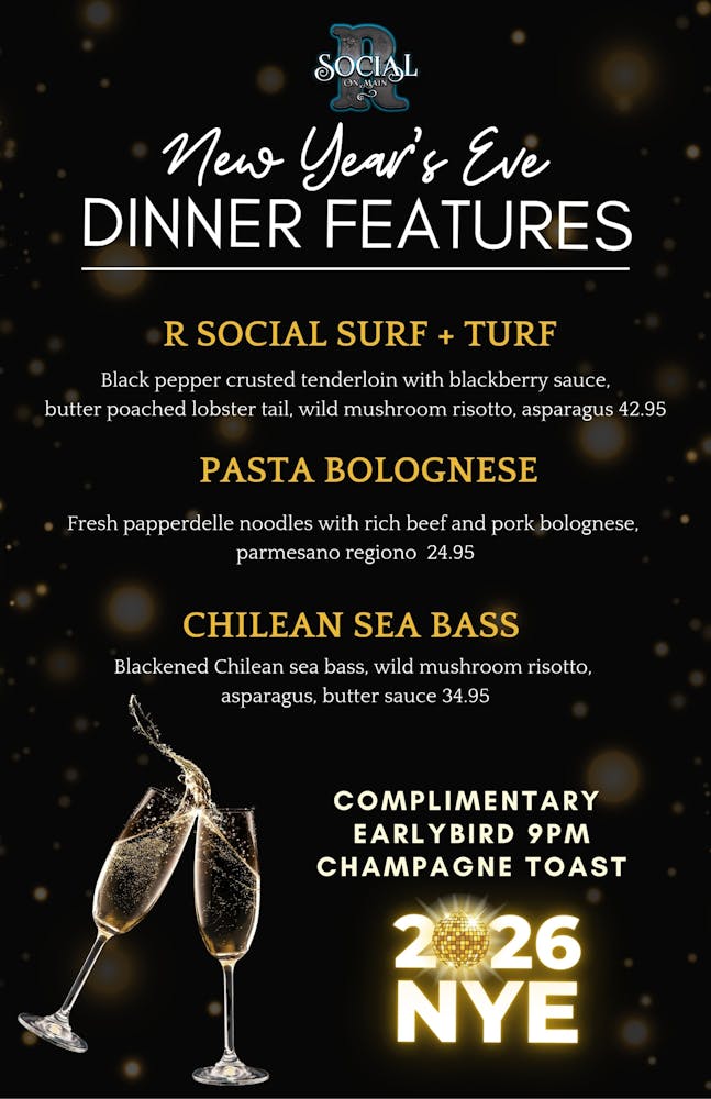 Chef Dinner Feature + Complimentary Earlybird Champagne Toast at 9pm!